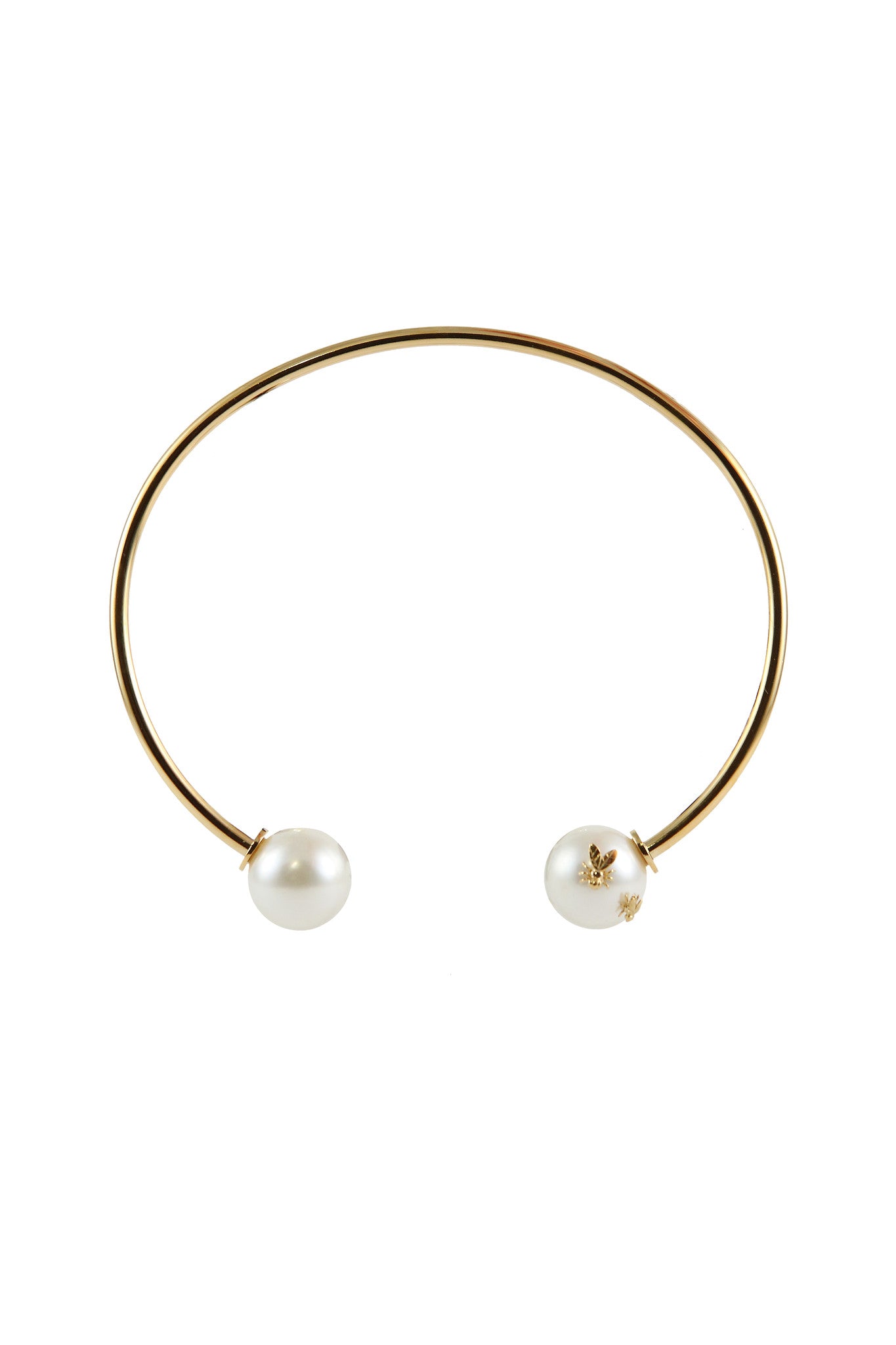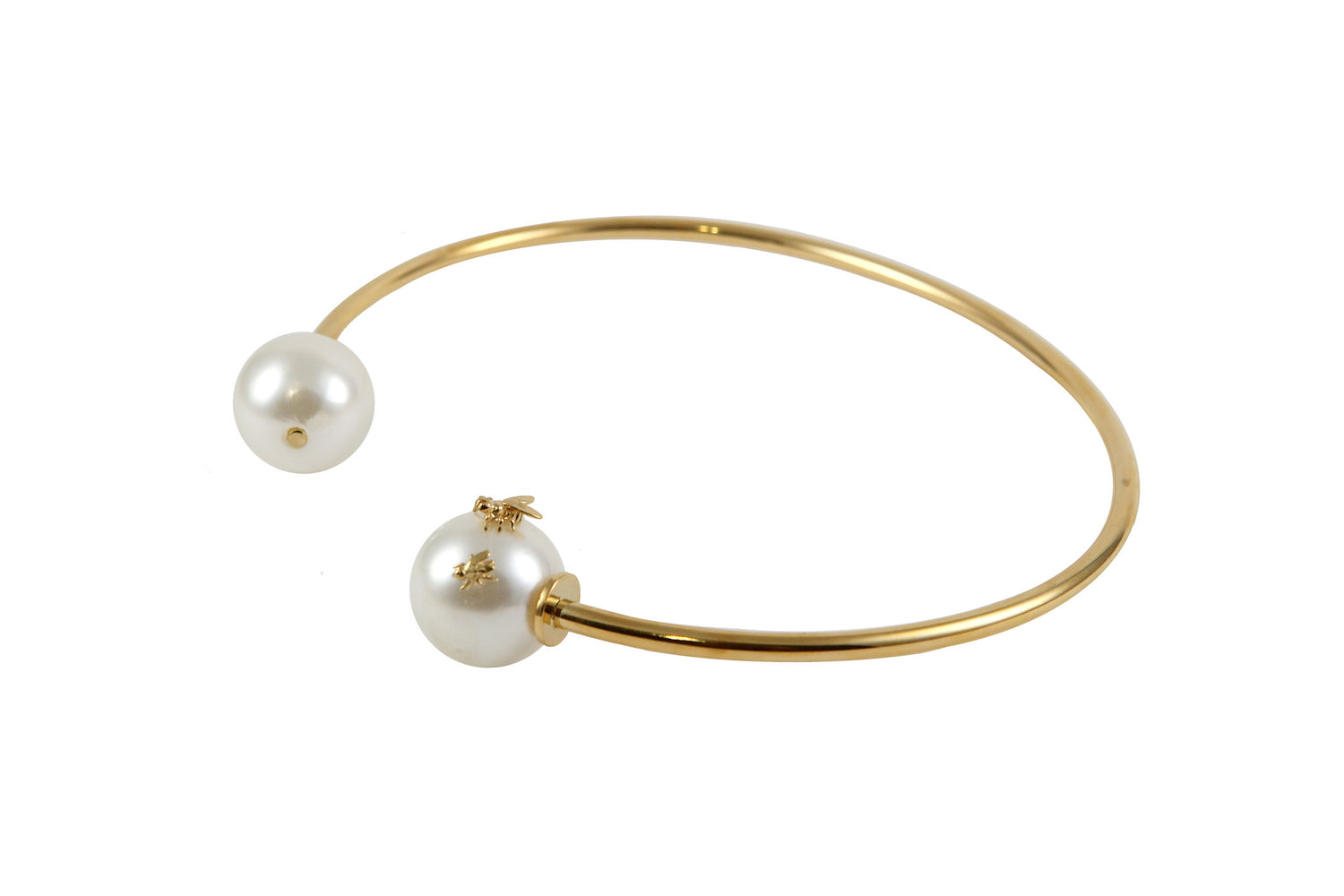 Collar con dos perlas en los extremos, una de ellas con dos moskas realizadas en material de liga