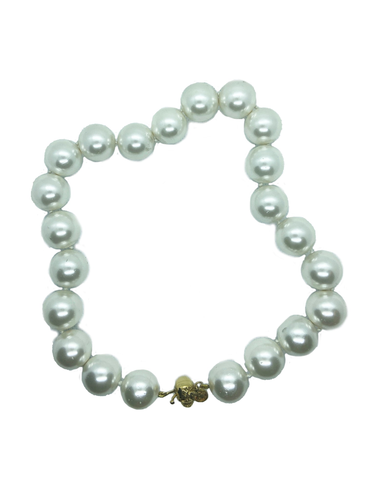 Collar de perlas de abulón con dije de calaca en oro de 14 K