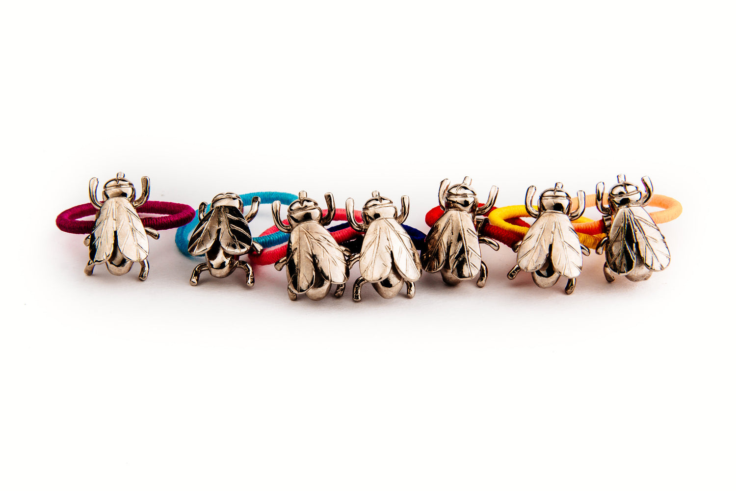 Anillo de liga de color con moska de tamaño L plateada realizada en material de liga.