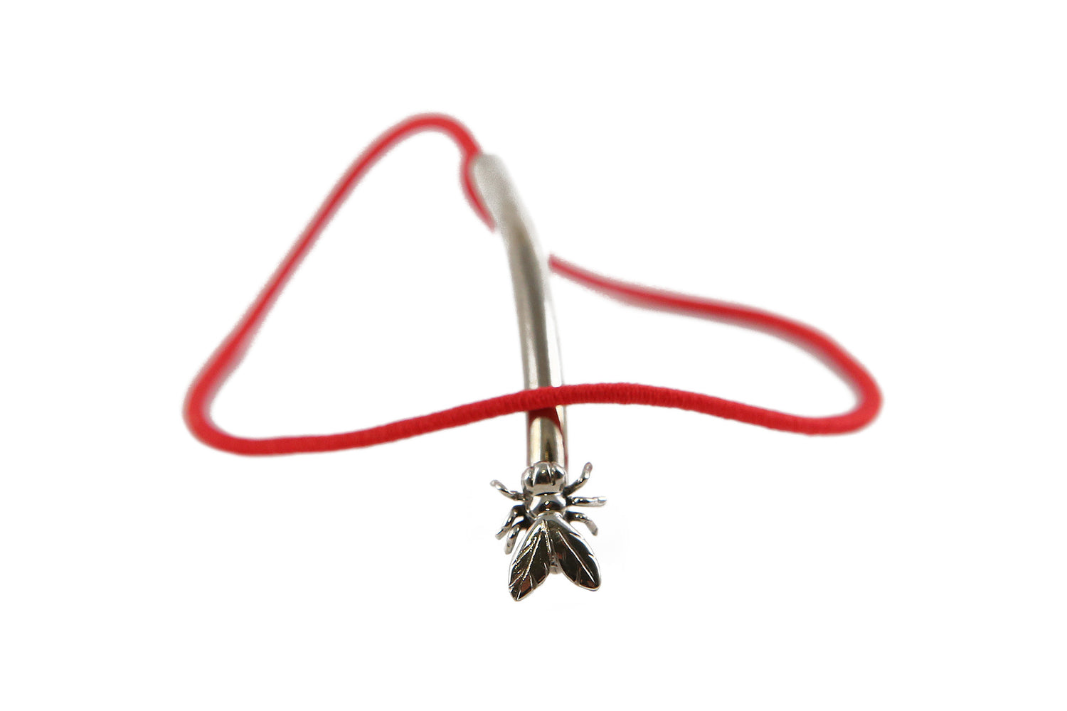 Pulsera para adulto de liga de color con moska plateada realizada en material de liga.