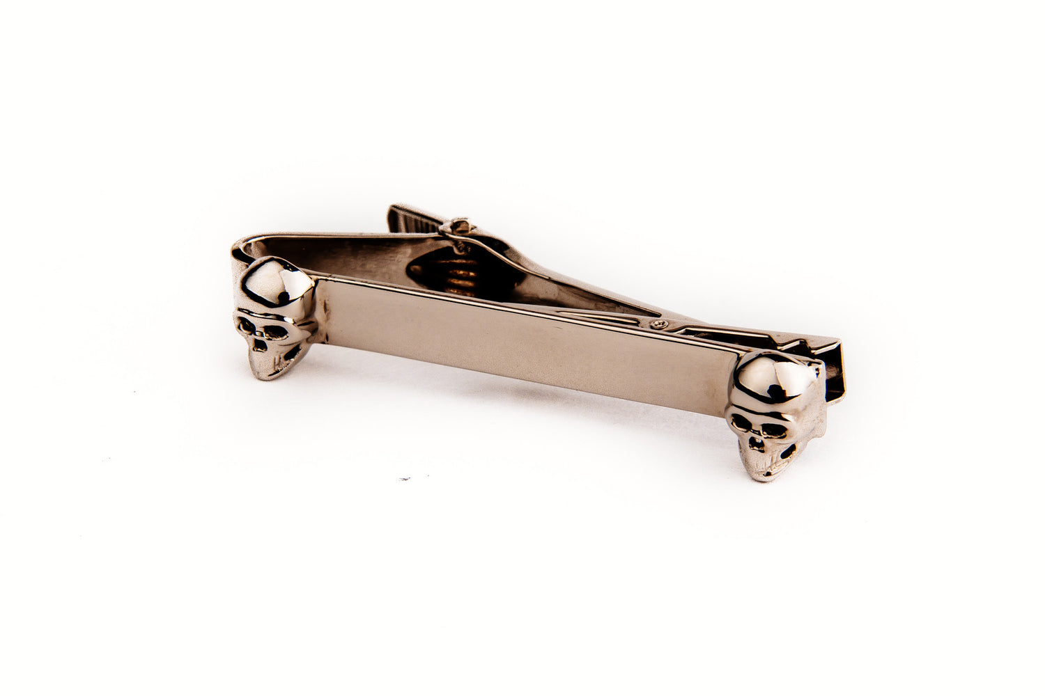 Pisacorbatas realizado en plata con calaveras en los extremos.