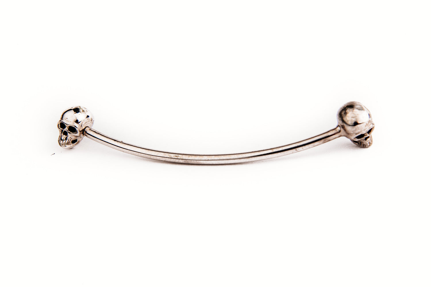 Barra para la corbata con terminaciones en skull realizada en plata.