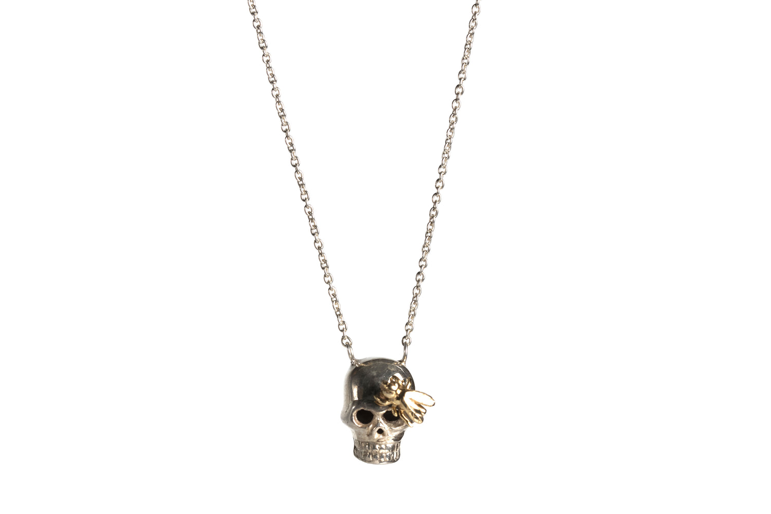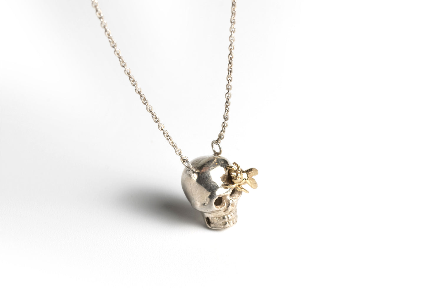 Colgante de skull de plata con mini moska realizada en oro de 14K